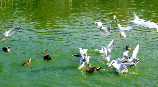 4月3日上午,在老虎灘近海海域沙灘上,近千名市民手拿淡藍色的小桶,將一條條小魚拋向空中,引得千余只灰白色的野生海鳥,在海邊盤旋飛舞,嬉戲搶食,構成一幅人與自然和諧的優美畫面。千名市民投食喂海鳥,上午10時,公園外的喂食地點已經有許多愛心人士聚集在老虎灘海洋公園周邊海灘,幾個好動的小朋友按奈不住興奮的心情,拎著裝滿新鮮魚蝦的小桶,在海灘上跑來跑去,呼喚著海鳥們的到來。
