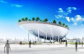 日本館:銀白色的日本展館形成一個半圓型的大穹頂,宛如一座“太空堡壘”,其實,這是一層含太陽能發(fā)電裝置的超輕“膜結(jié)構(gòu)”。這讓日本館成為一座會“呼吸”的展館。
